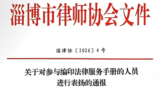 近日,淄博市律师协会发布《淄律协〔2026〕4号》文件,对在2025年度编印系列法律服务手册工作中作出突出贡献的...