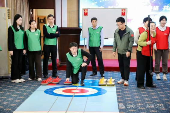 典礼环节结束后,全体成员投入了充满策略与协作的陆地冰壶团建活动。赛场上的智慧博弈与紧密配合,正是“以法为盟”团队精神的生动写照。活动之后,大家共赴温馨午宴,在美食与畅谈中进一步深化情谊,为本次年会画上了圆满的句号。